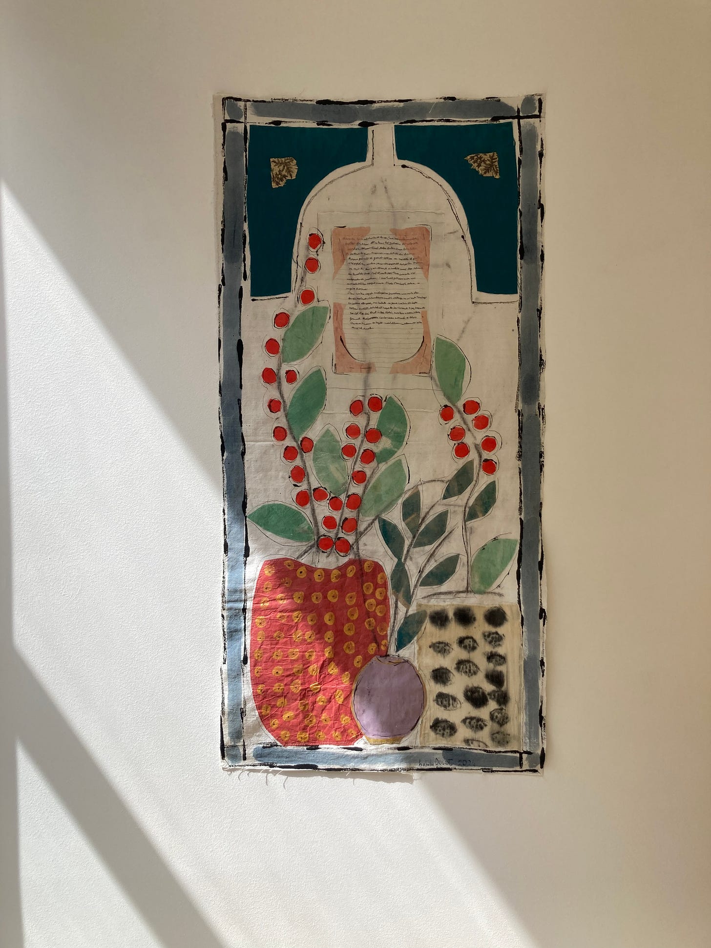 A dialogue between Ellen and Georgie, two emerging artists working between naturally dyed textile works and abstract dreamscape paintings. It will celebrate the beauty in the everyday, focusing on the micro and macro elements that make up a scene - be it urban or rural, real or imaginary. The works have all been formed from their wanders; Ellen’s paintings were produced on a residency in South West France, using earth pigments foraged on walks in the landscape. While Georgie paints unique collations of shapes, forms and textures found on her wanderings in the city.