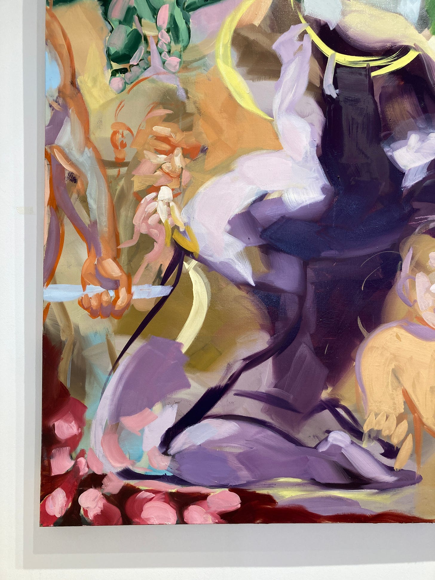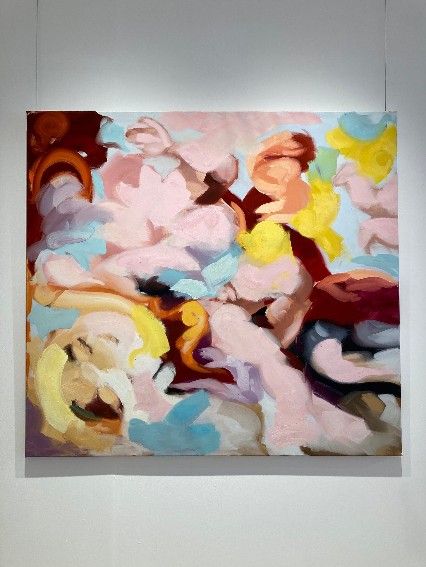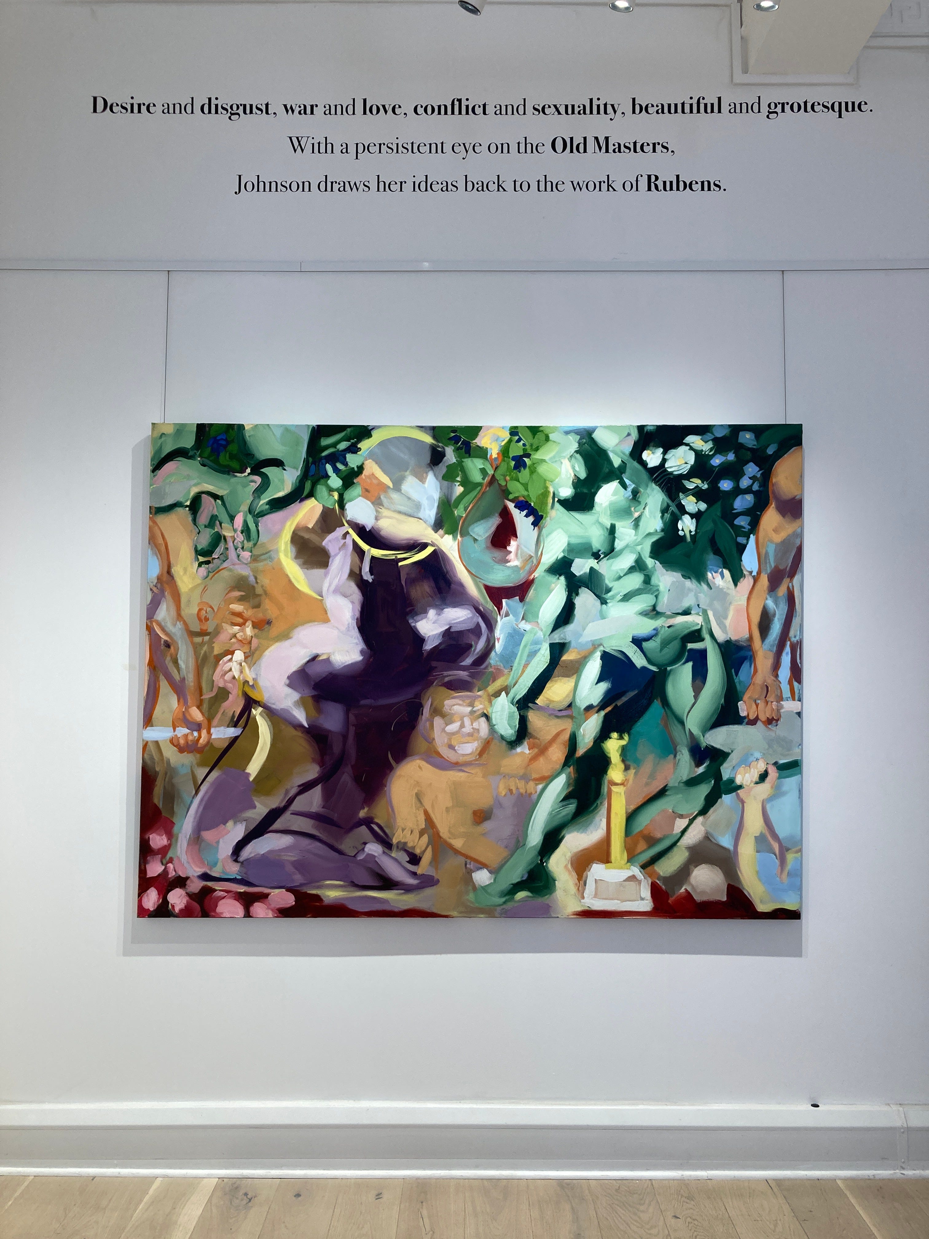 Playful, provocative, ironic, Johnson’s modern take on the Old Masters is an absolute triumph. Imaginative and fun from initial glance, but look closer and the paintings reveal darker topics, taking you deeper through the layers of paint, spinning the taboo into comedic narratives. There’s a vibrant energy to Johnsons painting style, each piece tells a unique story, through the light swishes of her paintbrush - squint and more dancing figures are revealed, a banana, a pair of iced buns. I walked round the gallery multiple times and each time found something new in the works. The sign of a great talent.