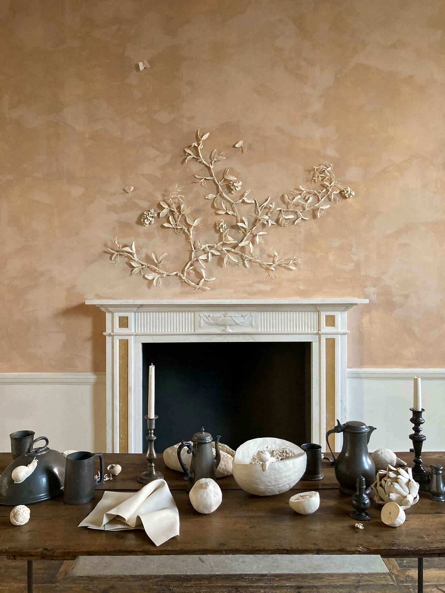 This ceramic installation immerses the viewer in a wild landscape still-life; ivy climbing across walls, weeds springing up in the shadows, tangled brambles, seed heads and thistles. An abandoned dining table laid with ceramic fruit and vegetables, crawling with snails, butterflies dancing across the walls. Nature reclaiming the dilapidated Georgian rooms, capturing a fleeting moment in time. Tatebayashi says that she’s trying to take back control and preserve time through clay, showing that nature is the ultimate artist. A breathtakingly delicate and unique display, one of my favourites of 2023.