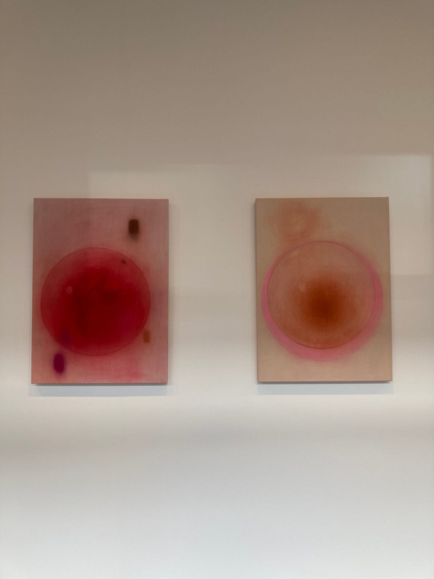 Walk along the towpath in Haggerston, and you’ll come across Alma Pearl Gallery right by the canal, just down from the popular Towpath Cafe (sadly closed for winter) - quite a location. Currently on show is a small collection of works by Margarita Gluzberg, these works are all pastel, graphite and coloured pencil on canvas or paper. Each one minimal in detail but alive with a soft, serene quality emphasised by the blurring of colours, like the pink haze at dusk on a late summers day or a freezing mist on a crisp winters morning. My favourite a pillbox red sphere slowly bleeding out into a dusty rose background, a pop of fuchsia, burnt terracotta and muddy brown thrown into the corners. It’s very obvious when an artist has an innate colour pairing talent - Gluzberg possesses this skill. The forms float on the canvas, perfectly placed, blurring into each other, connected but separate, reminiscent of the universe; planets circling planets, or a clear night sky looking up at a galaxy of stars - albeit in jewel shades. A magical exhibition.